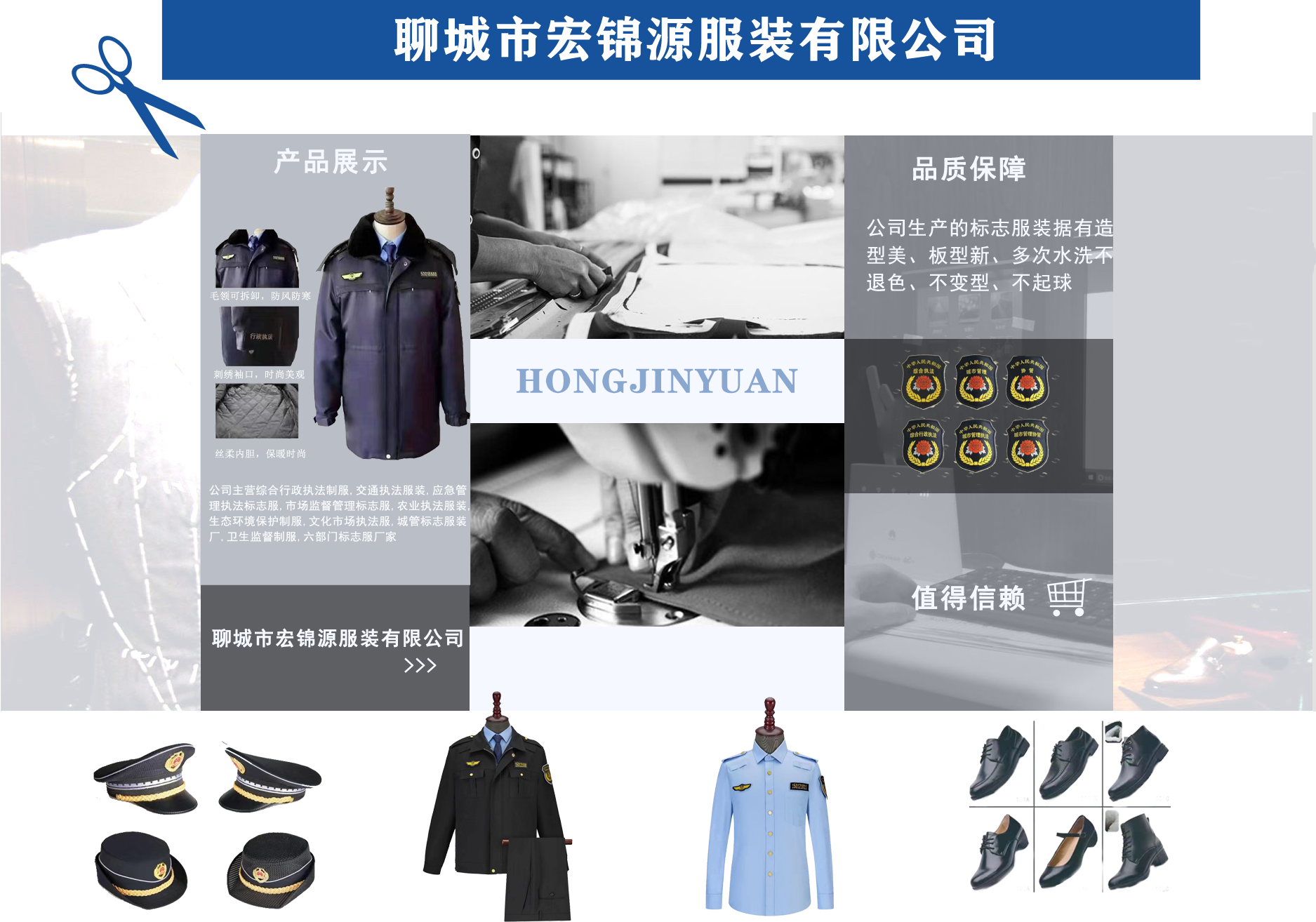 聊城市宏錦源服裝有限公司位于江北水城—山東聊城,地理位置優(yōu)越,交通便利。公司主營(yíng)綜合行政執(zhí)法制服,交通執(zhí)法服裝,應(yīng)急管理執(zhí)法標(biāo)志服,市場(chǎng)監(jiān)督管理標(biāo)志服,農(nóng)業(yè)執(zhí)法服裝,生態(tài)環(huán)境保護(hù)制服,文化市場(chǎng)執(zhí)法服,城管標(biāo)志服裝廠,衛(wèi)生監(jiān)督制服,六部門標(biāo)志服廠家等,值得信賴! 公司生產(chǎn)的標(biāo)志服裝據(jù)有造型美、板型新、多次水洗不退色、不變型、不起泡?! 罢J(rèn)真辦事,踏實(shí)做人”是宏錦源的企業(yè)精神,我們的宗旨是:“用服務(wù)與真誠(chéng)來(lái)?yè)Q取你的信任與支持,互惠互利,共創(chuàng)雙贏!”我公司愿與國(guó)內(nèi)外各界同仁志士竭誠(chéng)合作,共創(chuàng)未來(lái)企業(yè)目標(biāo):在已選定的服飾領(lǐng)域中,成為行業(yè)的卓越者。 經(jīng)營(yíng)理念:追求產(chǎn)品卓越,為用戶提供完美、高效的服務(wù)。...
